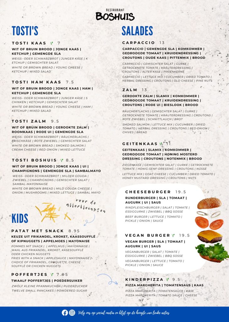 Liever thuis eten? Dat kan! Bestel via de onderstaande knop voor uw Restaurant Boshuis.